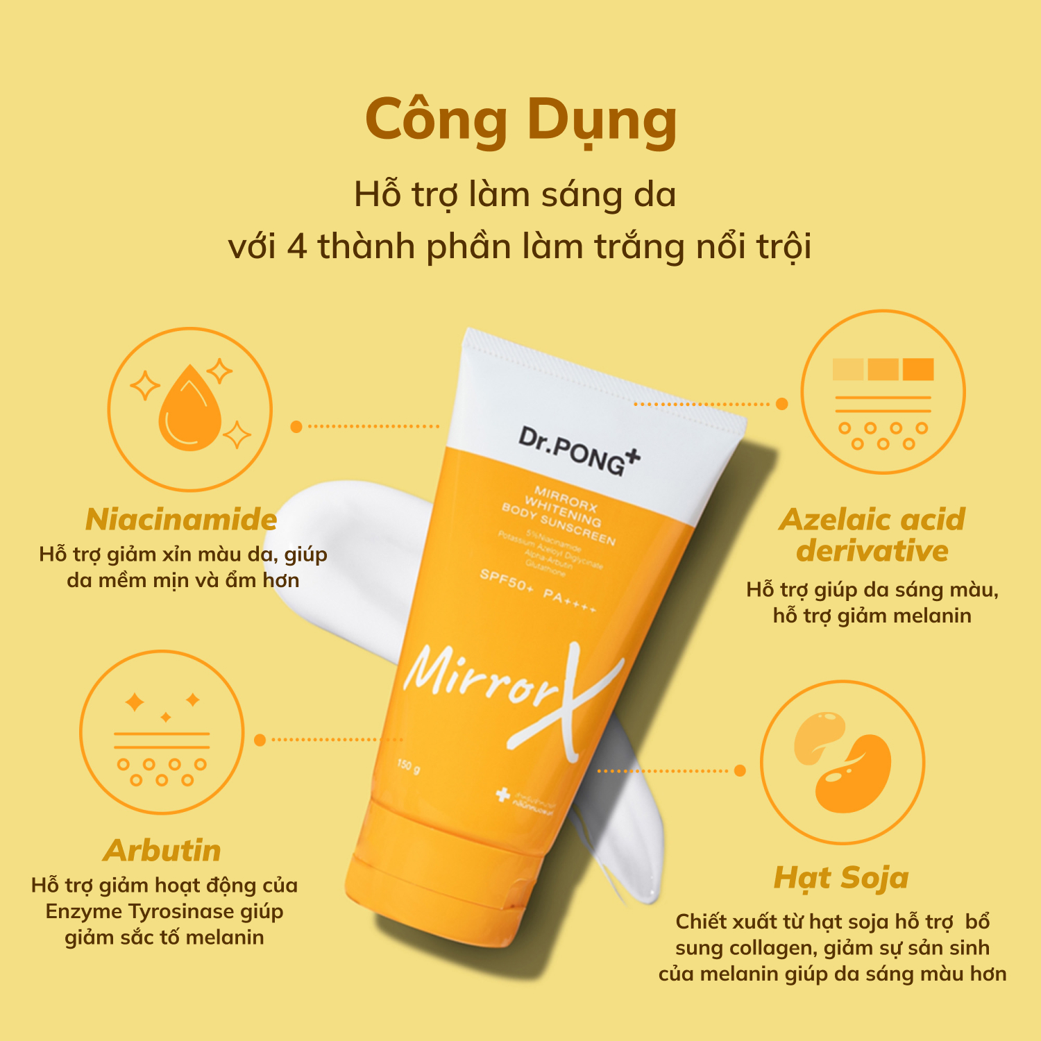 Kem chống nắng toàn thân Dr.PONG MirrorX Whitening SPF50+ PA++++ 150g